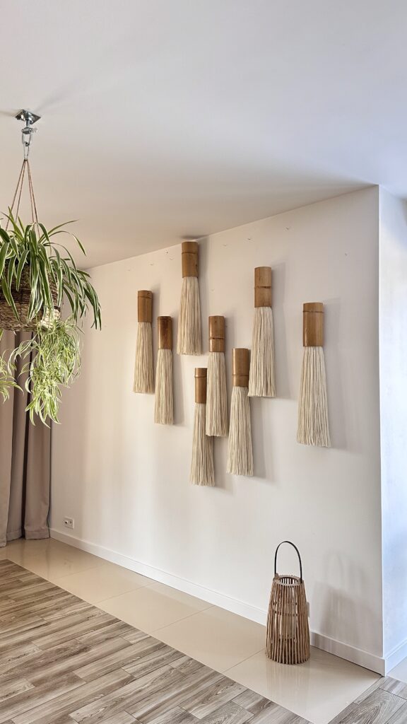 Crafted from natural bamboo wood and wool yarn, this piece adds architectural texture and sculptural presence to contemporary interiors, hotels, and commercial spaces.